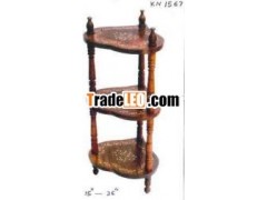 Wooden Corner Table 3 tier brass inlay art work and carving artworkFeatures