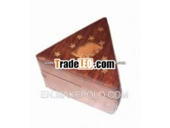 Wood triangle storage box, wooden carved & brassinlay decorative box, decorative storage box,